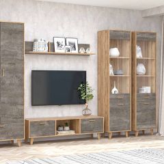 Модульная Гостиная Эго (Дуб крафт золотой/камень темный) на ножках